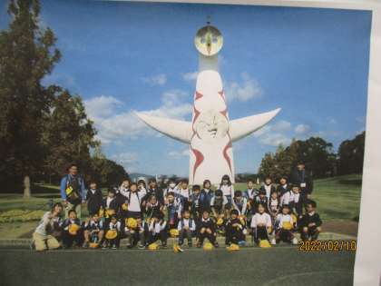 校外学習で見た太陽の塔のことにするようです。青い空に白い塔がとてもきれいでしたね。
