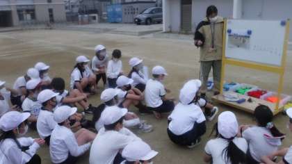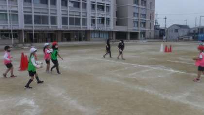 板書を活用して今日の課題を確認しています。 今日がはじめてのハンドボールだった子もいました。
