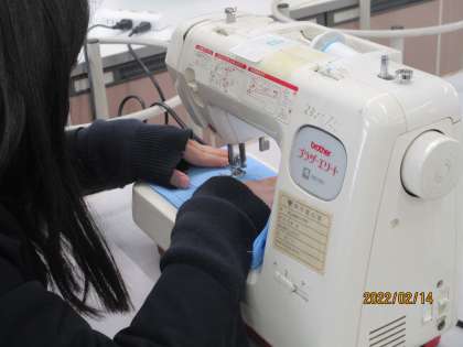 こちらも慎重に縫い進めています。集中しています。