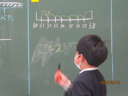 数直線を使った考え方を説明しています。さすがにもうすぐ2年生ですね。学習が積み重なってきています。