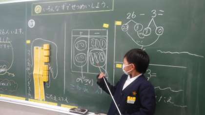 1年4組 算数 公開日 2022/02/15 更新日 2022/02/15 1年 岡野先生が研究授業で行っていたところを4組さんも学習していました。 どのクラスも考えを説明できるように育ってきています。