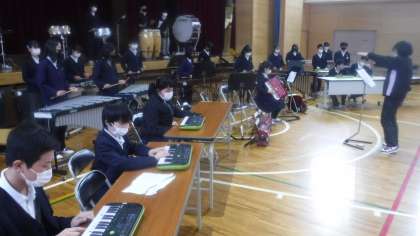 旅立ちコンサートに向けて合奏の練習を行っています。 1組は甲子園の音楽でもおなじみ「アフリカンシンフォニー」です。