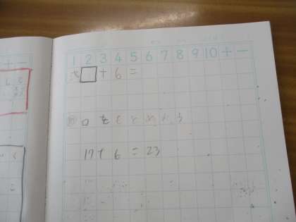ノートに自分の考えを書いています。式だけではなく,問題場面の数量の関係を図で表している人もいました。