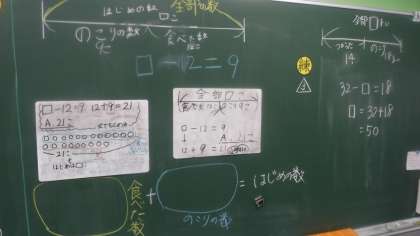 昨日の学習の様子です。わからない数字について四角を使って考えています。