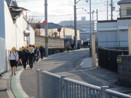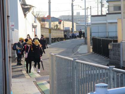 今朝の登校の様子です。昨日にも増して風が強く寒さの厳しい朝です。