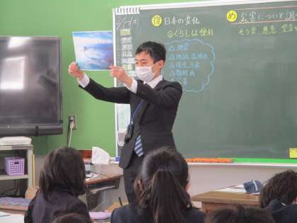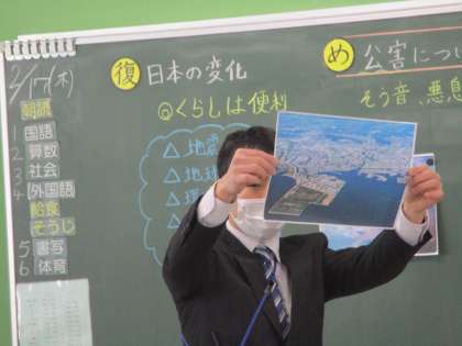 5年3組 社会 公害 1 公開日 2022/02/17 更新日 2022/02/17 5年 前の時間に,戦後の日本は産業が発展して暮らしが便利になった反面,公害等の問題が生じたことを学びました。今日は2枚の写真を手掛かりに,公害について考えていきます。