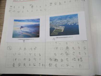 昔の写真のけむりの様子に驚きを感じているようです。今とは大きく違っています。