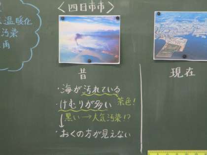 5年3組 社会 公害 5 公開日 2022/02/17 更新日 2022/02/17 5年 気づいたことを発表しています。写真が示す様々な事実から,空気や水(海)が汚染されているだろうということを読み取っています。