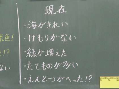 5年3組 社会 公害 6 公開日 2022/02/17 更新日 2022/02/17 5年 続いて,現在の写真から気づいたことを発表しました。この間にどんなことがあったのでしょうか。今後,それも考えていきましょう。