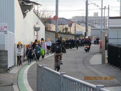 今朝の登校の様子です。風と寒さが和らいで穏やかな朝です。