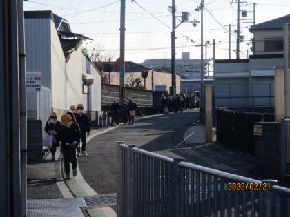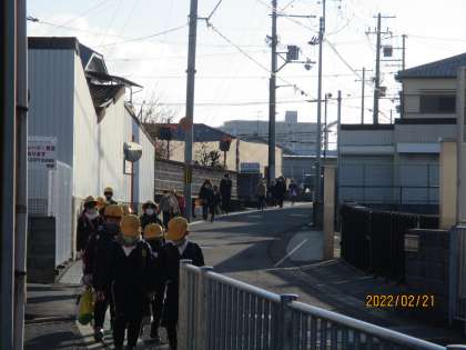 今朝の登校の様子です。晴れてはいますが,風が強くてとても寒い朝です。