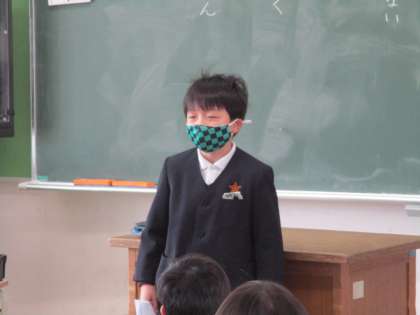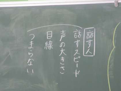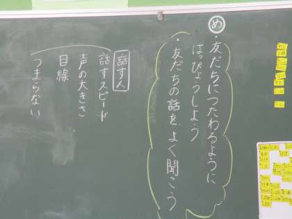 2年生の楽しかったことをスピーチする学習です。「速さ」「声の大きさ」「視線」「詰まらずにすらすら話す」ことが目標です。