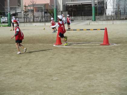 しかし,残念ながら,ボールはわずかにそれて,得点にはなりませんでした。思ったところにけるコツをさらに身につけていきましょう。