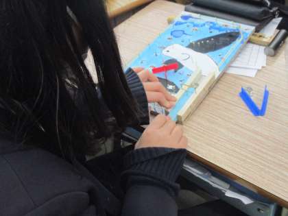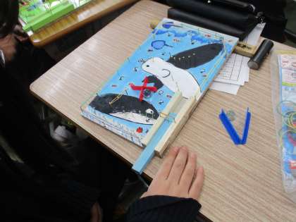 真ん中の赤いしかけのところに,うまくビー玉が行きました。思った通りにできているようです。