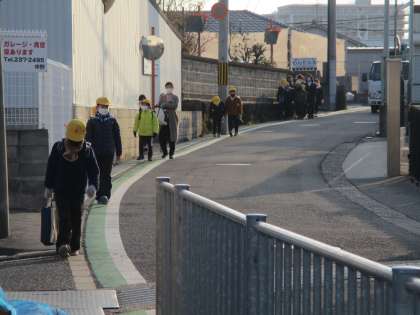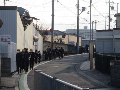今朝の登校の様子です。2月も下旬になり日差しは明るいのですが,風が冷たい朝です。