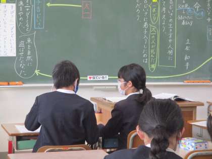 与吉じいさの死に向き合った太一の心情についても,となりの人と意見交換しました。