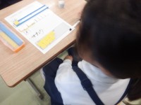 1年生の書写の学習の様子です。正しい鉛筆の持ち方が,美しい文字を書くための基本です。