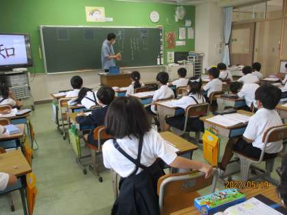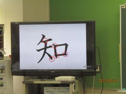 正しい書き方を知った後,読み方や言葉を出し合っています。