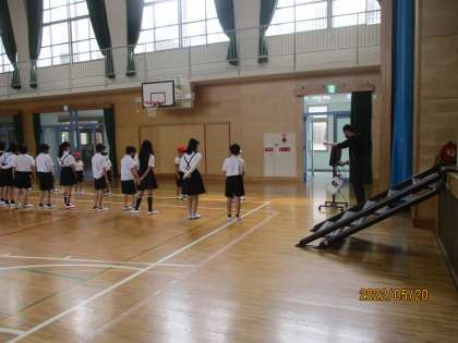 計測が始まりました。20秒間に何回線を越えられる(触れてもよい)かをはかっています。