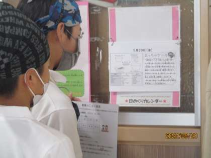 給食委員会の人が,お昼の放送に備えて練習をしています。伝えたい内容が正しく伝わるように,何度も練習していました。すばらしいことです。委員会の活動は,学校生活にとって大切な仕事です。みなさんの活躍に期待しています。