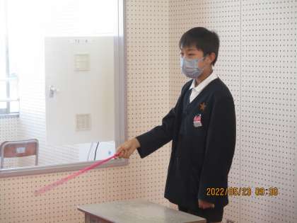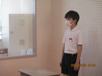 テレビ朝礼の様子です。児童会の人たちが進行します。