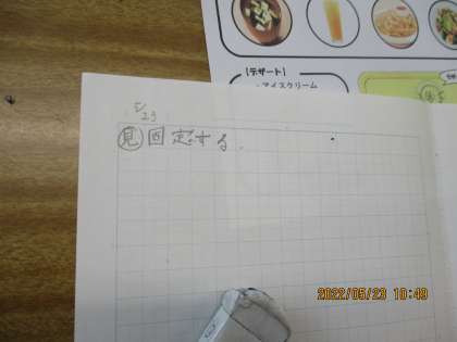 問題が分かったところで,解決への見通しを持とうとしています。これまでの学習を生かし,Aから最初に選ぶメニューを「固定」して,「落ち」や「重なり」を防ごうとの見通しのようです。