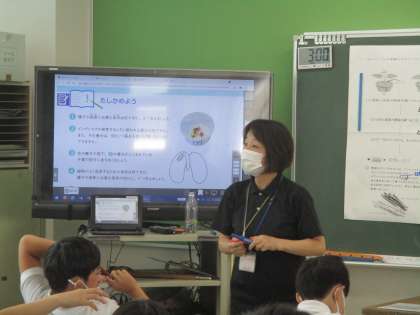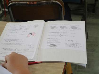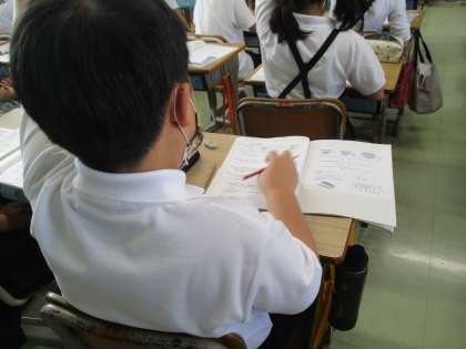 ワークシートに取り組んだ後,これまでの学習をふりかえりながら,確かめをしています。