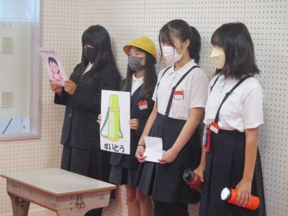 保健委員会からのお知らせです。熱中症予防のために,大きな水筒を用意して十分に水分補給ができるようにすること,運動するときはマスクを外すこと,朝食をとって午前中の活動のエネルギーを蓄えておくことなどの話がありました。しっかり守ってください。