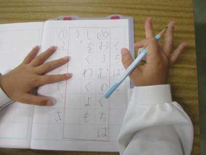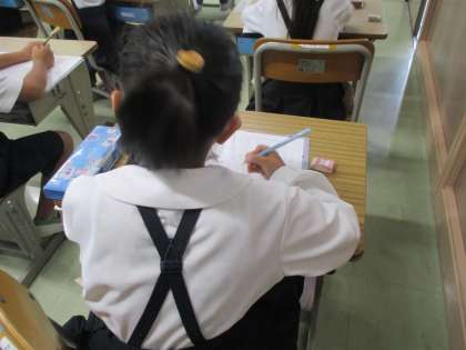 ノートに今日のめあてと学習したことを書いています。ノートの使い方の学習でもあります。