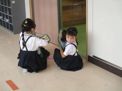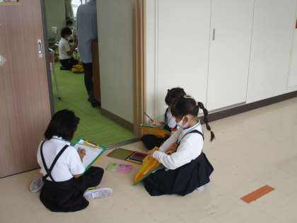 音楽室の様子をうかがっています。音楽室は4年生以上の音楽の学習に使っています。