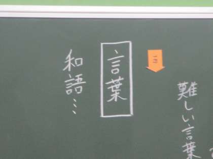 「和語」の文字を見て,「和風」「和食」「和室」などの言葉をつぶやく人たちがいました。「和」は日本を表す言葉なので,「和語」の意味もおおよそ想像がついていたようでした。
