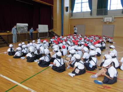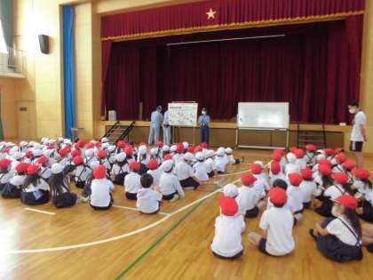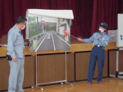道路の歩き方を知り,自分の命を守るために気を付けることについて学んでいます。