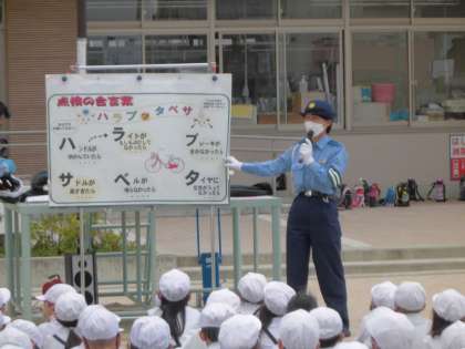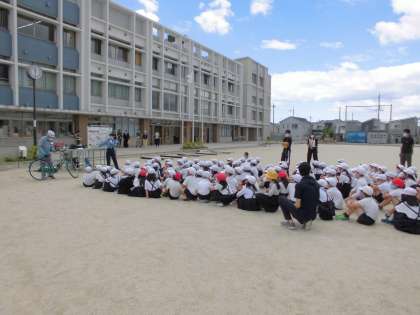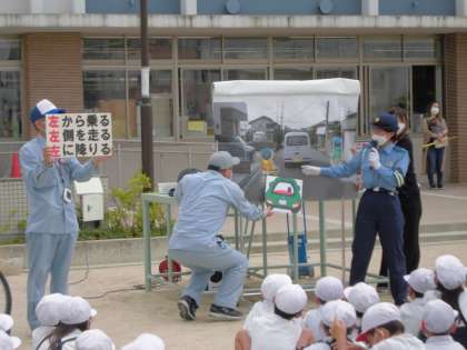 最初に自転車の点検の仕方,3つの左「左から乗る」「左側を走る」「左に降りる」などについて教えてもらいました。