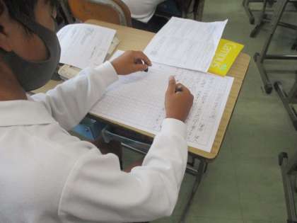 原稿用紙に向かって書き進めています。