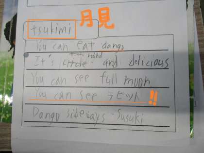 「月見」を紹介するようです。確かにお団子は楽しみですね。うさぎは本当に見えるのでしょうか。