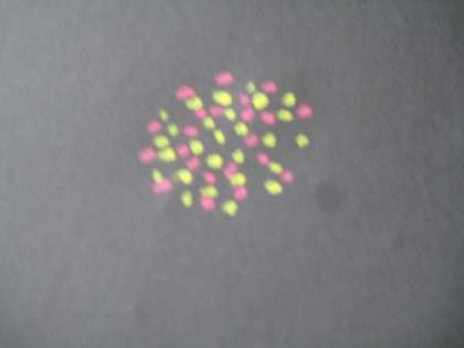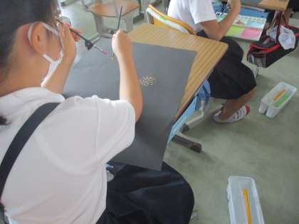 黒い画用紙に花火を描いています。白を混ぜて,画用紙の黒に負けないはっきりした色を出すことが大切です。