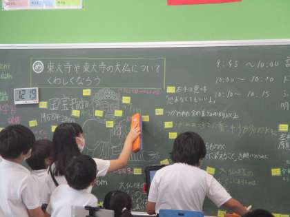 調べてわかったことを黒板に記録してまとめています。たくさんのことがわかってきました。