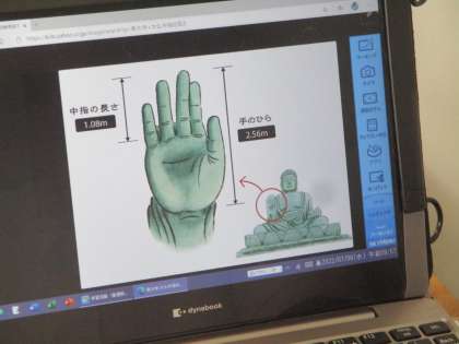 大仏様は中指だけでも長さが1m以上あるとわかりました。実物を見たときにどんな感じを受けるのか,明日が楽しみです。
