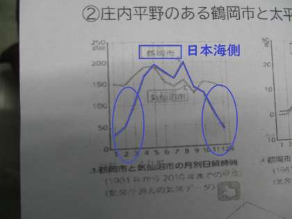 米の生育期間ではないものの,冬の間の日照時間がこれほど少ないのに,なぜ生産量が多くなるのか・・そういう疑問がまだ解消されていないようです。これは大切なことです。この後の学習で引き続き問題意識に持っておくとよいと思います。
