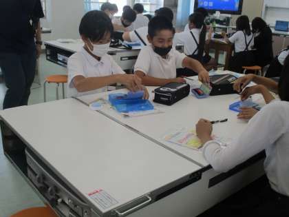 裁縫箱の中から,縫い針1本と糸を用意しているところです。
