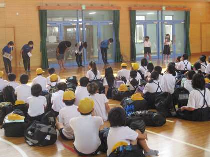 付き添う先生たちにあいさつをして,いよいよ出発です。