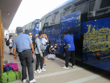 大きい荷物をバスに積んでいるところです。