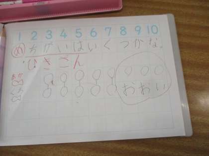 赤,黒それぞれの金魚を「○」で表して,問題に場面を図に描くことができています。