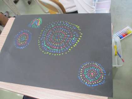この後,この花火を見上げている自分を書いて絵に貼っていくようです。