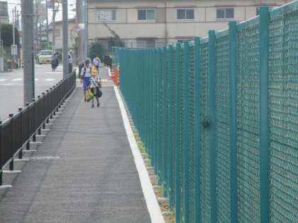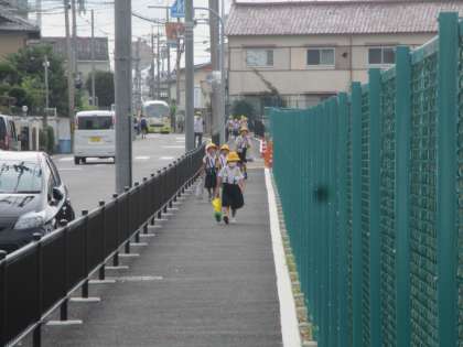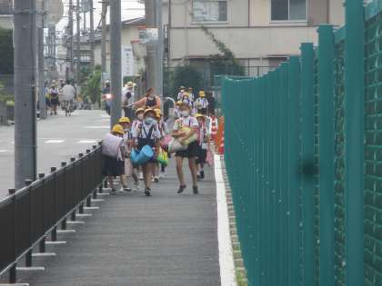 今朝の登校の様子です。雲で強い日差しはさえぎられていますが,蒸し暑い朝です。