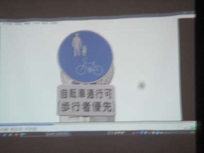この標識のある歩道は自転車で走れますが,ここでも,歩行者の通行を妨げないようにしましょう。