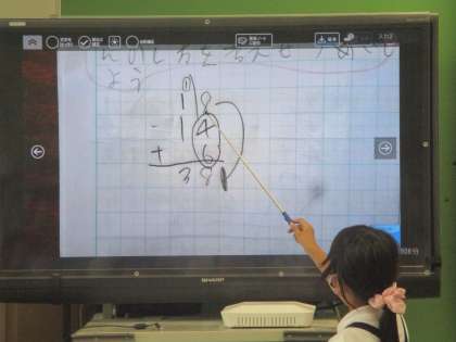 4と6が○で囲まれているところから,先にこのたし算で10にして・・と説明しています。
