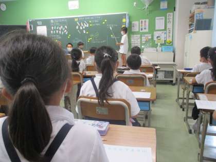 この人は,今黒板で説明しているのと同じような図を描いています。説明が自分の考えと同じなのかどうか,しっかり聞いています。