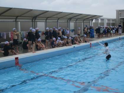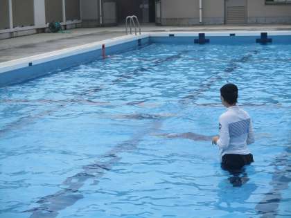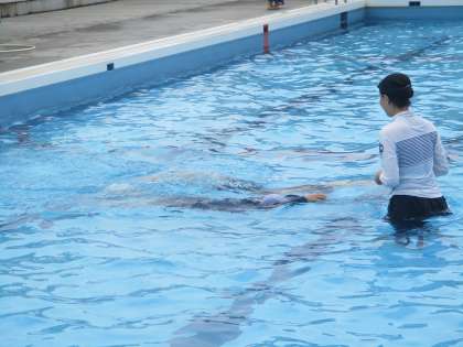 この2人のお手本の人たちは,頭が水に入って,きれいに浮けています。
