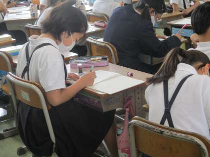 考えがまとまった人が黒板に説明用の図をかき始めました。その間も,自分の考えをまとめようとしています。課題にしっかり取り組んでいます。